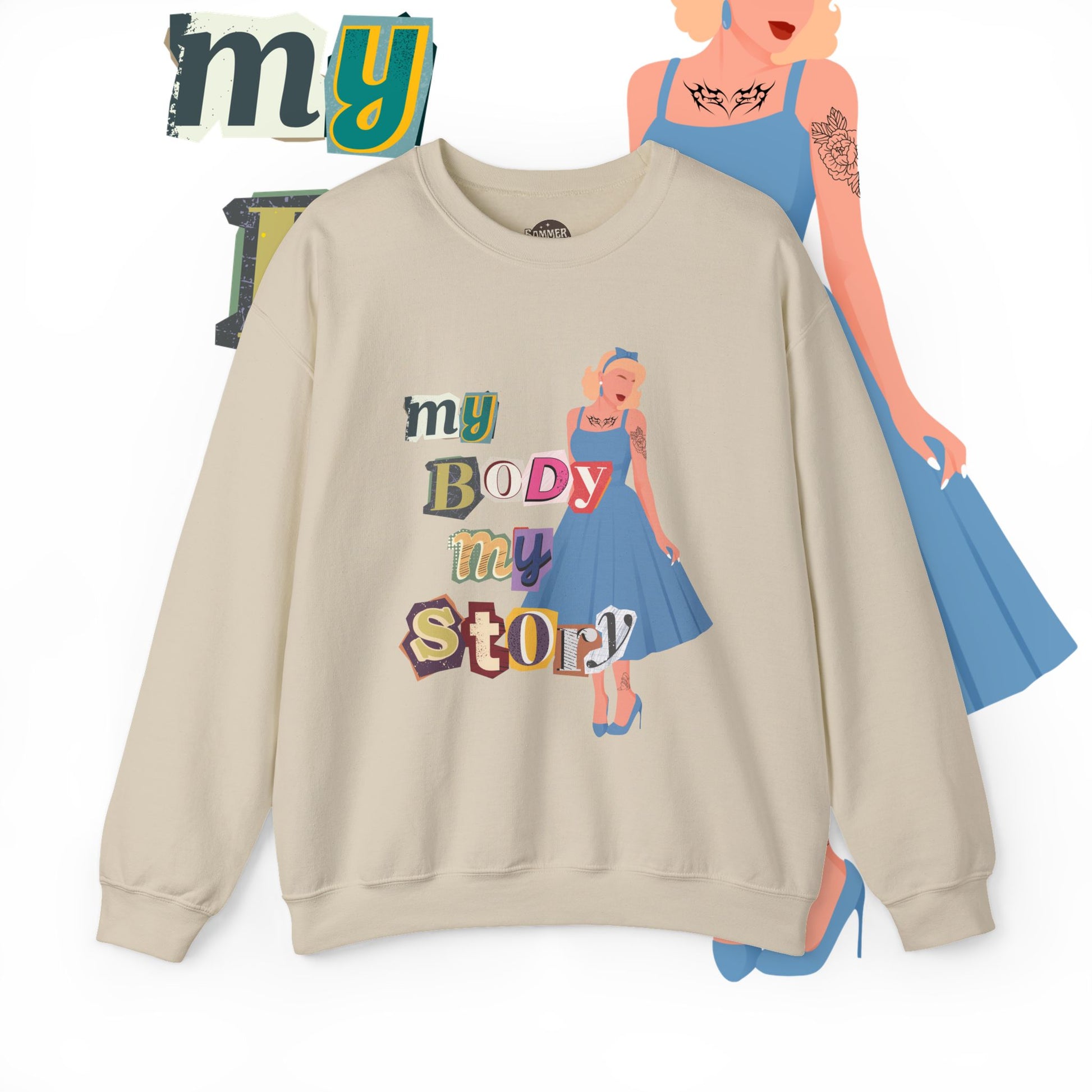 A cozy and durable sweatshirt designed for women proud of their tattoos and personal stories. This sweatshirt is perfect for colder months and offers a comfy fit with a clean-cut style. It is relevant for women who embrace self-expression through body art and want to stay warm in style. Ideal for casual wear, social gatherings, or tattoo-related events.